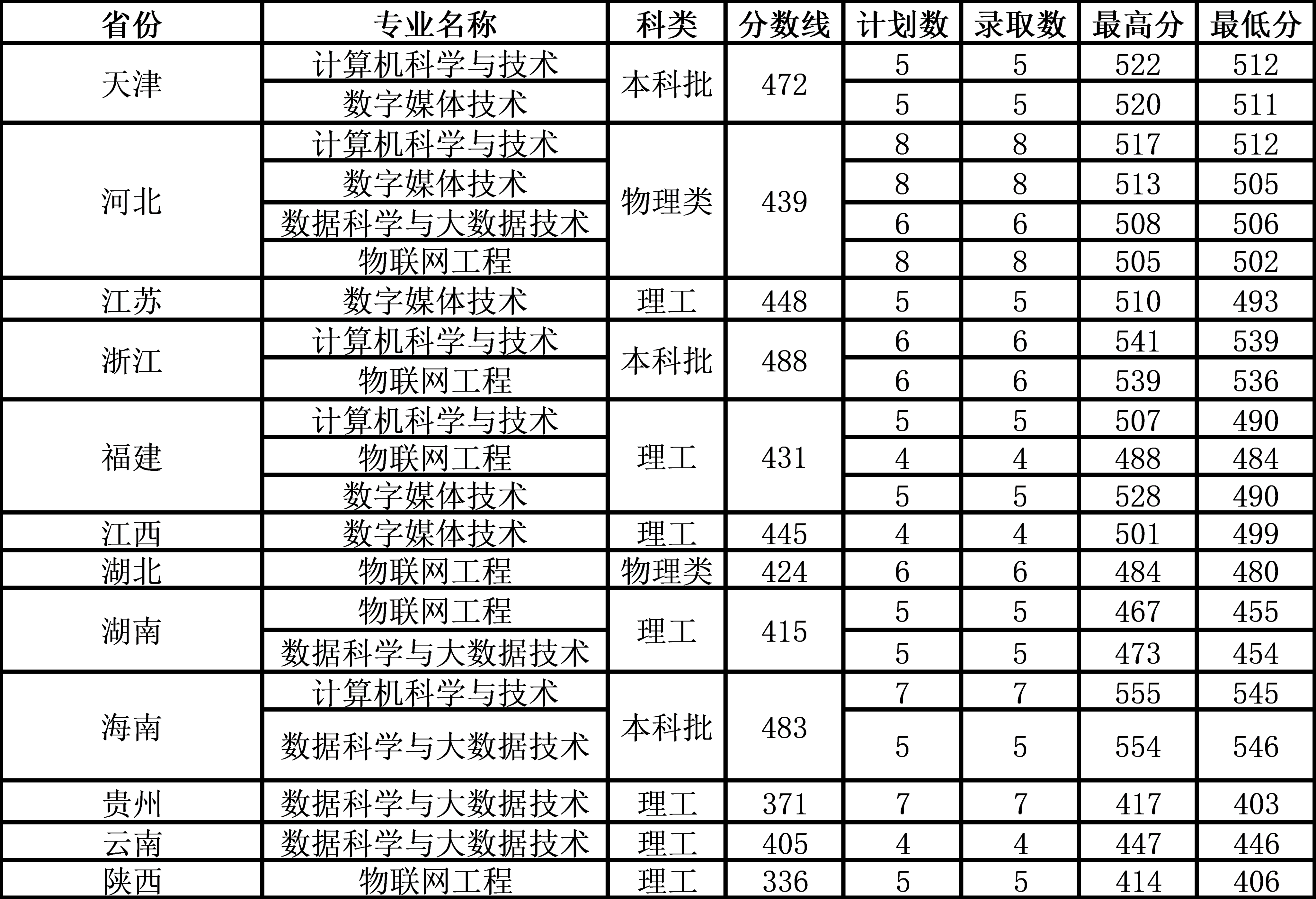 三、计算机与数据学院2023年外省本科各专业录取统计