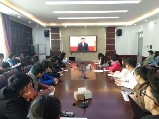 yl9193永利集团学生代表于12月18日教学楼会会议室集中观看《改革开放四十周年大会》。