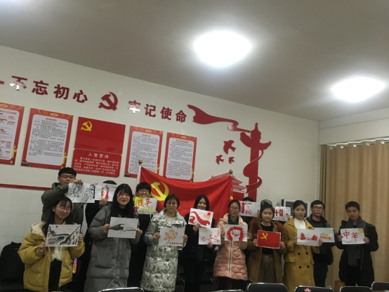 会上,学生党支部全体党员一同观看了“庆祝改革开放四十周年大会”,观看完毕之后,全体党员齐齐创想,绘出自己心中的中国蓝图,画出党员对祖国满满的爱。最后全体党员重温入党誓词,共同颂唱国歌。
