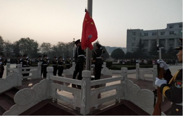 早上7点钟升旗仪式正式开始。迎着朝阳,学校国旗护卫队成员迈着铿锵的步伐来到了国旗台下,全场一片肃静。在激昂的《义勇军进行曲》中,升旗手振臂一挥,鲜艳的五星红旗徐徐展开,在初升的阳光映照下,国旗缓缓上升。仪式之后,由优秀学生代表胡凤瑞作国旗下演讲话,精彩的讲话让同学们响起了热烈的掌声。最后,伴随着掌声,本次升旗仪式圆满结束。