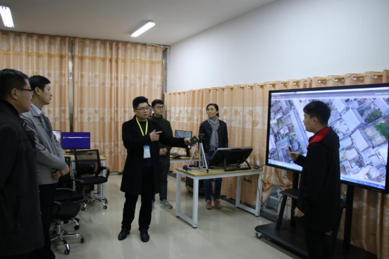 王笃波一行前往十号教学楼参观了大数据中心、虚拟仿真实验室、创新创业中心、“椅子网”教室。计算机学院党总支书记李宝宏、院长何宗耀、党总支副书记张星、团总支书记兼学工办主任张航以及管理我院相关实验室的负责老师陪同参观,何宗耀带领团队参观、并做讲解。