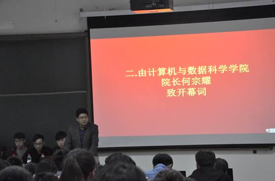 会议伊始,何宗耀致大会开幕词,他充分肯定了上届主席团在工作中的奉献精神和端正的工作态度,并对新一届的临时主席团提出了要求,希望新一届的主席团能够发扬之前的优良传统,改革创新,把计算机学院的学生工作做的更好。