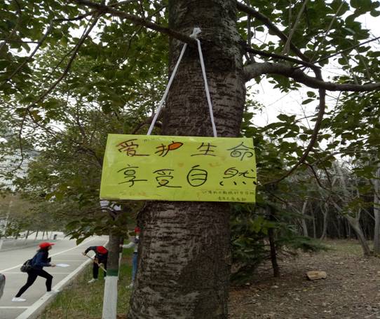 活动伊始,志愿者们带齐了所需工具前往指定地点,开始植树护树工作,为树木松土、补水聚水环、贴环保标语等等。多名志愿者都是第一次植树护树,他们带着一股子热情和力量,投入到本次活动中。这不仅是一次让同学们尊重自然贴近自然的活动,也传播着以“乐于奉献、从点滴小事做起”的雷锋精神。