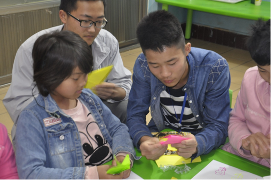 康复中心的大多数孩子每天都有家长接送,他们的听力受损程度也各不相同,有的小朋友完全可以和志愿者对话,有的小朋友却要看口型慢慢地理解。在这里,志愿者们同小朋友一起学写字、学画画、做手工……和他们玩的不亦乐乎。在这里,他们和正常孩子一样。他们会和志愿者们热情地打招呼,他们会骄傲的把画好的画展示给志愿者们,也会笑容灿烂的和志愿者们进行交流。