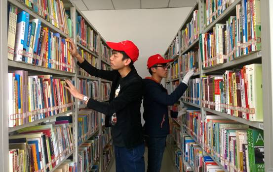 为志愿者们搬运整理书籍