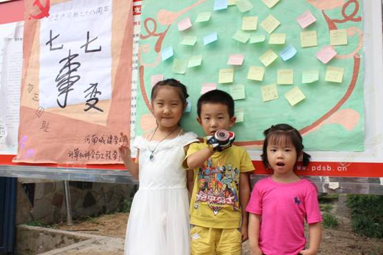 (图为小朋友们在七·七宣言海报下合影)