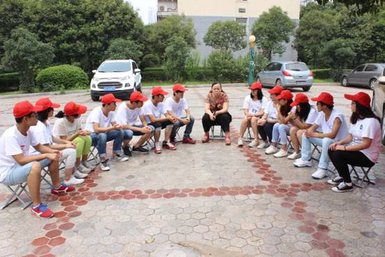 (图为计算机学院团总支书记与志愿者们交流“四进四信”工作开展情况)