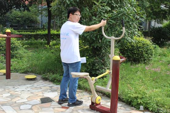 志愿者们在老师的带领下来到了平顶山市新城区湖光花园小区,进行清理和维护社区的日常健身器具以及,其他公共设施的活动。因为建筑的年代性,器材已经不是很新,大多数都有损坏,这严重影响了小区居民的使用,更加突出了这次活动的重要性。在活动中,志愿者们进一步的了解到小区居民对于健身器具的要求之重要,小区健身设施已经成为小区居民日常生活中不可缺失的一部分,他们是小区居民空闲时间锻炼身体的唯一选择。在没有更多的时间充分锻炼的时代,小区健身器材成为了许多人休闲娱乐的唯一途径。同样,健身器材也是小区儿童的娱乐设施,因为空间的占据,他们只能将娱乐场所放在健身器材的空间中,通过对健身器材的清洁和修理,不只是完善了小区居民的健身方式,同时也完善了孩子们的娱乐方式。尽管志愿者们不是正规的维修工,但是通过这次的实践,他们学到了更多的维修手段,掌握了更多的维修工具。