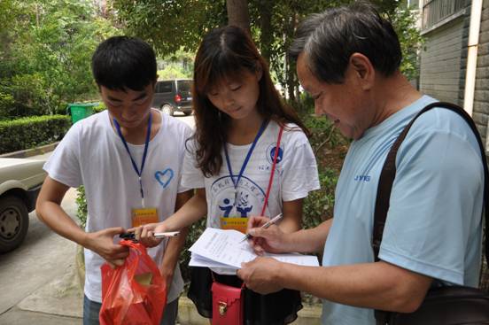 (图为志愿者小分队拿着活动海报前往社区进行宣讲)