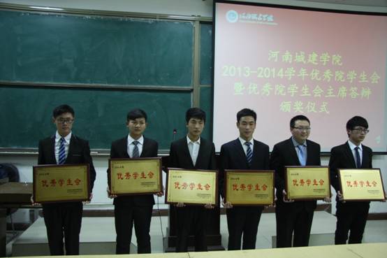(通讯员 张星 胡杭肖)12月9日下午,河南城建学院2013-2014年优秀学生会及优秀学生会主席评选大会在10号楼B108教室举行,计算机科学与工程学院凭借上一年出色的工作表现,积极开展学院活动,在全校上下形成的巨大影响力,荣膺2013-2014“优秀学生会”称号,主席罗家伟荣获优秀学生会主席。