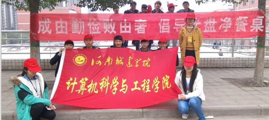 (通讯员:许成锋)为了提高广大学生的勤俭节约意识,河南城建学院计算机科学与工程学院于2015年03月25日中午11:30在布芳园餐厅附近举办“成由勤俭败由奢,倡导光盘净餐桌”签名活动,倡导文明餐桌,减少舌尖上的浪费,弘扬中华民族勤俭节约的传统美德。