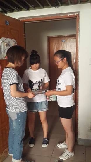 计算机科学与工程学院的青年志愿者们在二区六号楼宿舍门口开展“123行动拒绝图书上的浪费”的号召活动,向同学们介绍“123义捐图书”的意义和好处,号召同学们奉献自己的爱心,引导他们拒绝图书浪费。并且向同学们散发宣传卡片,邀请同学们积极的参与当中。