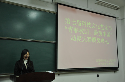 (通讯员 张星 刘佳佳)2013年10月30日,由计算机科学与工程学院承办的我校第七届科技文化节“青春校园,最美中国”动漫大赛颁奖典礼在十号楼A座105室成功举办。计算机科学与工程学院党总支副书记何宗耀,校团委副书记赵笑声,副院长耿永军,团总支书记及各年级的近百余名同学们参加了此次典礼。
