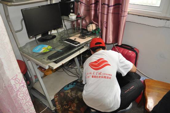 2013年7月11日,河南城建学院计算机科学与工程学院暑期社会实践活动的志愿者们走进小区进行免费电脑维修。
