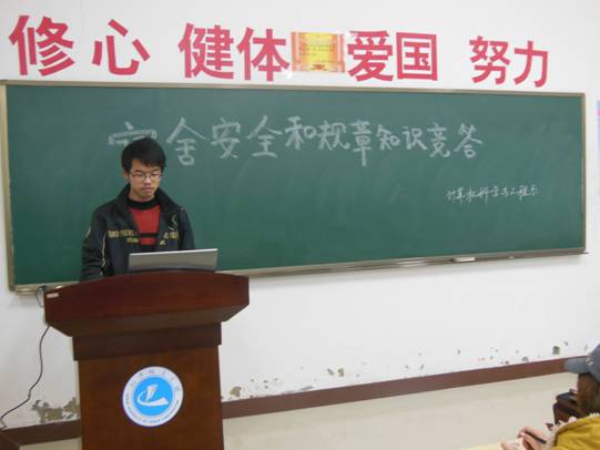 为增强学生安全防范意识,提高面对突发事件的应急能力,营造宿舍安全文化氛围。2012年11月24日晚,计算机科学与工程系于10#A110教室举办了“宿舍安全和规章知识竞答”比赛。