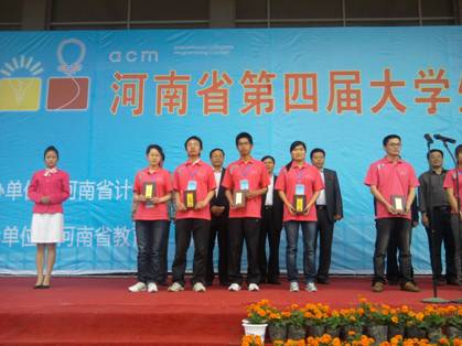 (通讯员 张星)5月21日至22日,河南省第四届大学生程序设计竞赛在河南科技大学举行。竞赛按照国际大学生程序设计大赛的比赛形式组织。来自省内24所高校的84个代表队参加了本次竞赛,我校计算机科学与工程系组成两支代表队参加了竞赛。计算机科学与工程系主任闫洪亮带队,耿永军副主任、周二强老师为教练,两个队的学生为闫建明、田丰、李文龙;龚玉坤、朱东昌、王渊卓。经过努力拼搏,激烈角逐,最终取得了两个银奖的优异成绩。