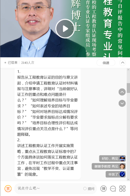 参加上述会议的各位教师积极踊跃、反应热烈。通过此次线上远程视频直播,为深化我院专业内涵建设、创新办学理念、尤其是工程教育专业认证内涵理解、教学质量监测评价等工作提供了有益的思路。