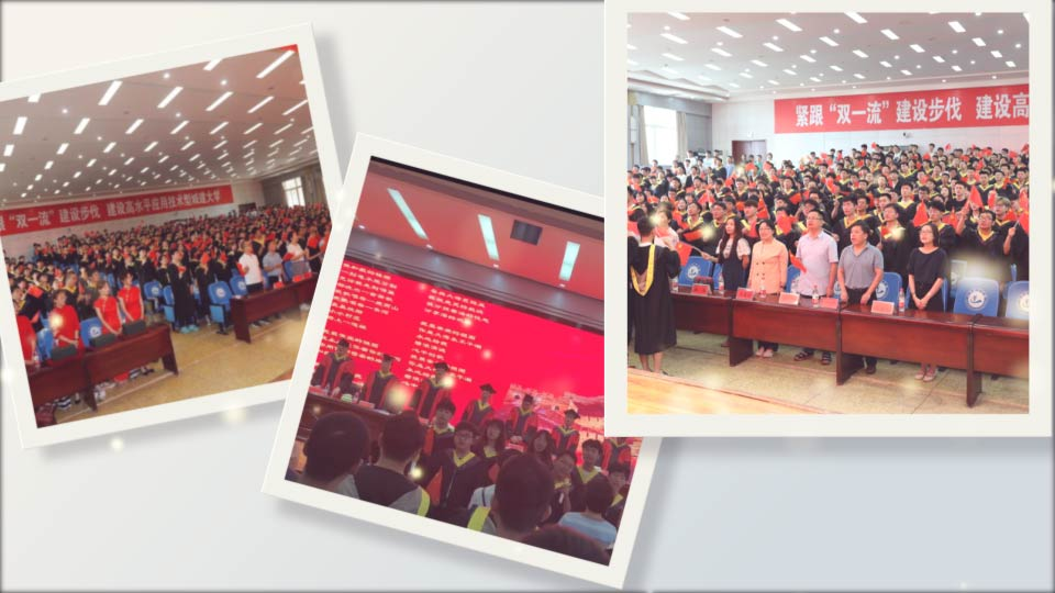 最后,在毕业生典礼适逢建党100周年之际,为增强学生的爱党爱国情感,师生挥动手中的五星红旗同唱《我和我的祖国》、《河南城建学院校歌》感恩党、国家和母校的培育,倡议毕业生走向新的岗位奉献自己一份力量。