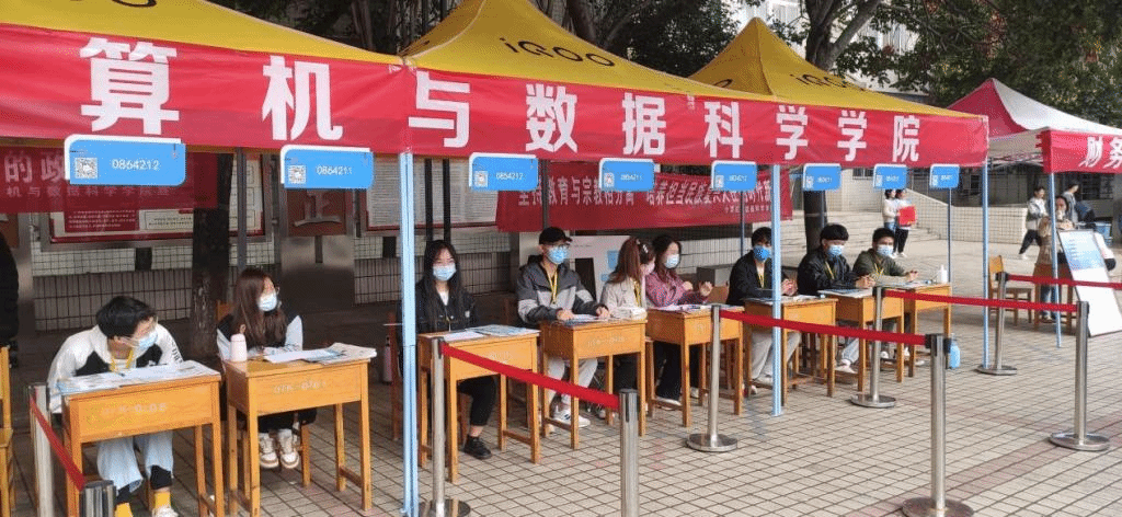 (通讯员 周岸 门顺文)10月12日早,我校21级迎新活动正式启动,计算机学院精心准备迎新活动,热烈欢迎来自五湖四海的2021级的新生。按照学校统一安排,计算机学院迎新点设置在西大门,学院报到点设置在3号教学楼门前。上午6:00,迎新教师和学生志愿者们整装待发,开始了紧张且井然有序的迎新工作。
