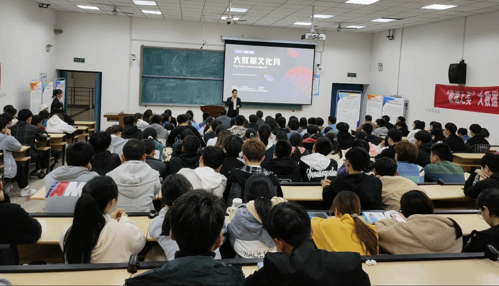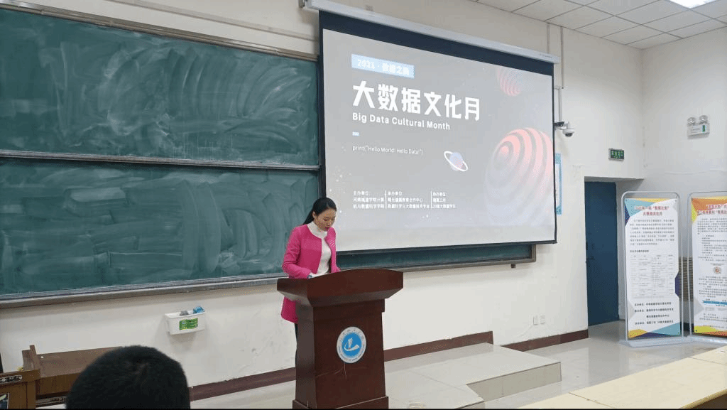 随后,刘源源老师先为在座的师生们详细介绍了大数据文化月的整体安排,各个活动的具体内容、意义和目的,希望各年级学生利用好此次学院与曙光瑞翼教育为大家搭设的大数据学习的良好平台,积极报名参加文化月的各项活动,通过各种方式、多种渠道了解、学习大数据相关的各种知识,提升自身能力,充实大学学习与生活。最后,张军老师为学生们详细的讲解了此次文化月中“瑞翼杯”技术应用挑战大赛的比赛流程,赛题分析等内容,告诉大家可以以何种角度、何种方式,应用何种技术来完成相应赛题作品的实现。