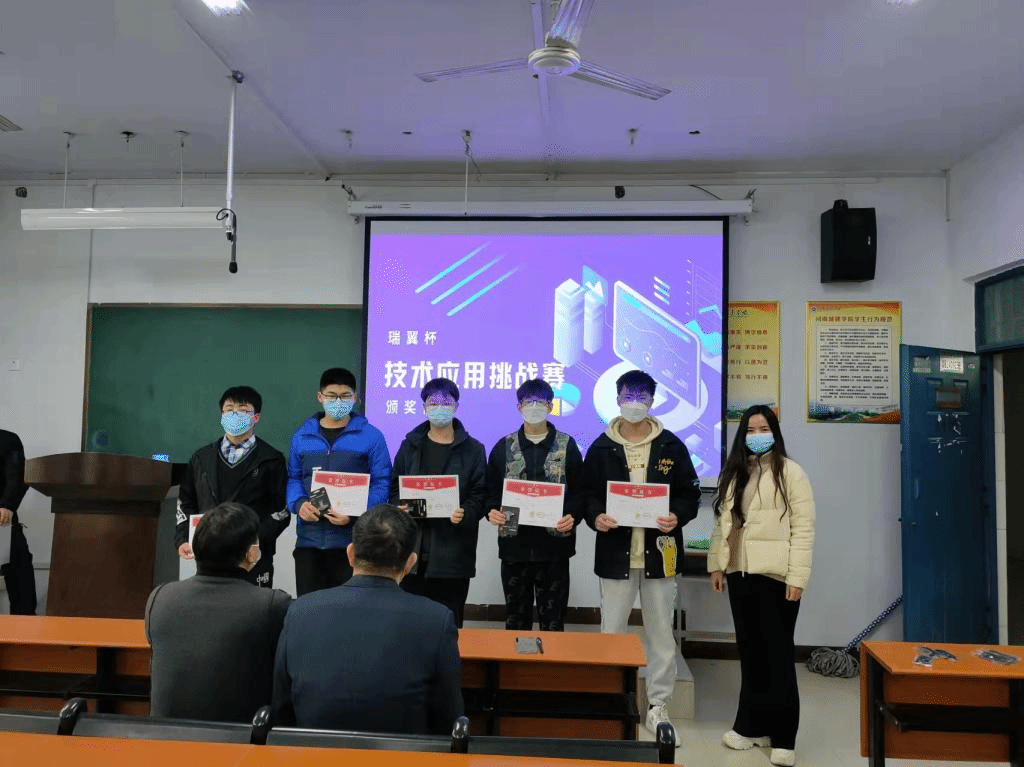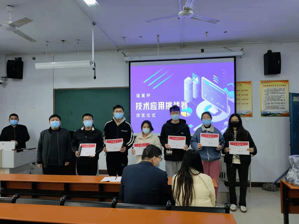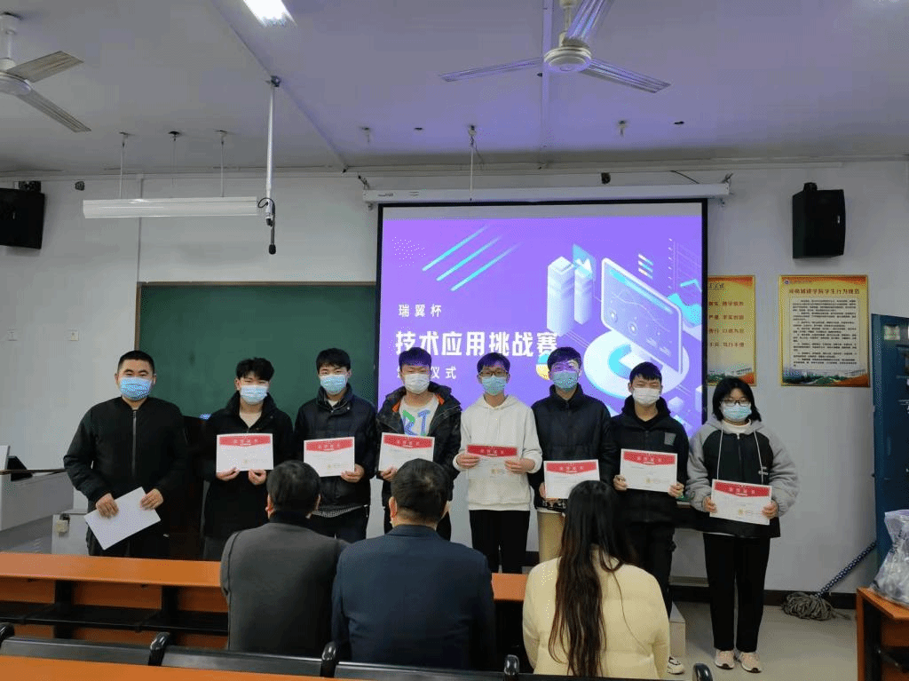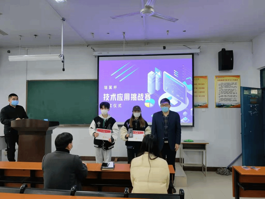 刘荣辉、郝伟、张敬普以及瑞翼教育张军分别为获奖选手颁发证书及奖品。