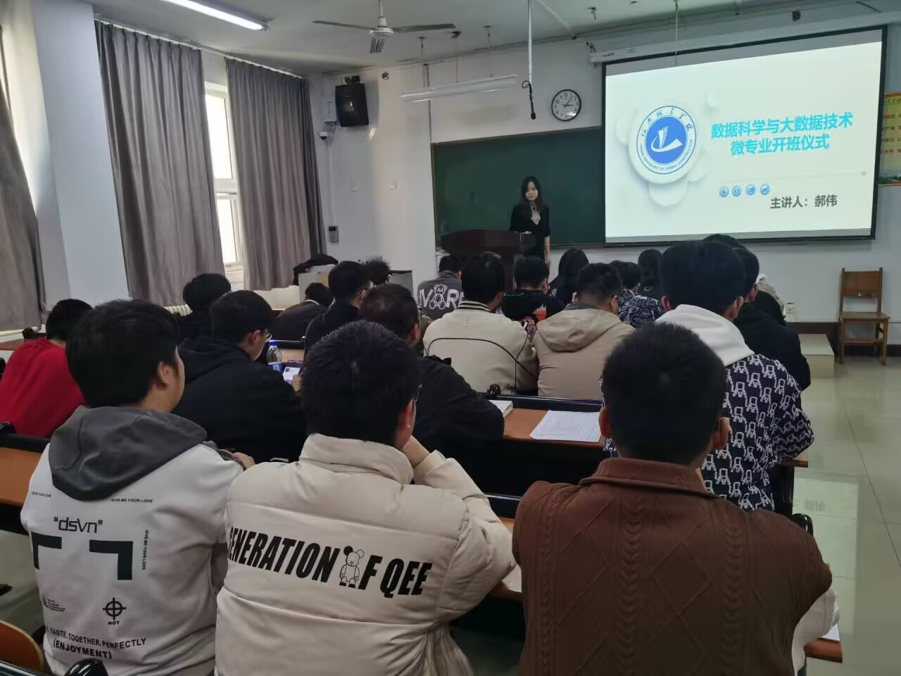 (通讯员 陈乐乐) 2023年11月21日下午,我院在10#A409教室举行“第二期数据科学与大数据技术微专业开班仪式”。本期数据科学与大数据技术微专业面向全校各专业学生开设,开班仪式由数据科学与大数据技术专业系主任郝伟老师主讲。