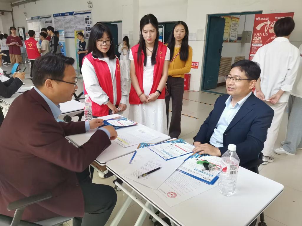 上午八点四十,受邀招聘企业陆续进场,九点求职学生先后进场。招聘现场,受邀单位纷纷展出岗位需求与招聘人数,求职的学生根据自己的专业纷纷与招聘单位深入交谈,招聘会现成如火如荼。学院院长赵军民深入招聘会现场,就校企合作、产教融合、就业实习基地建设等方面与来校企业深入交谈。