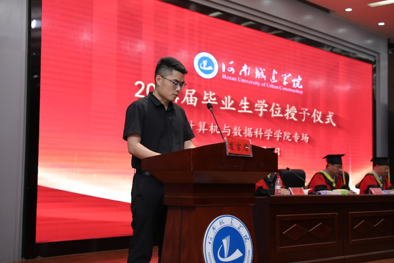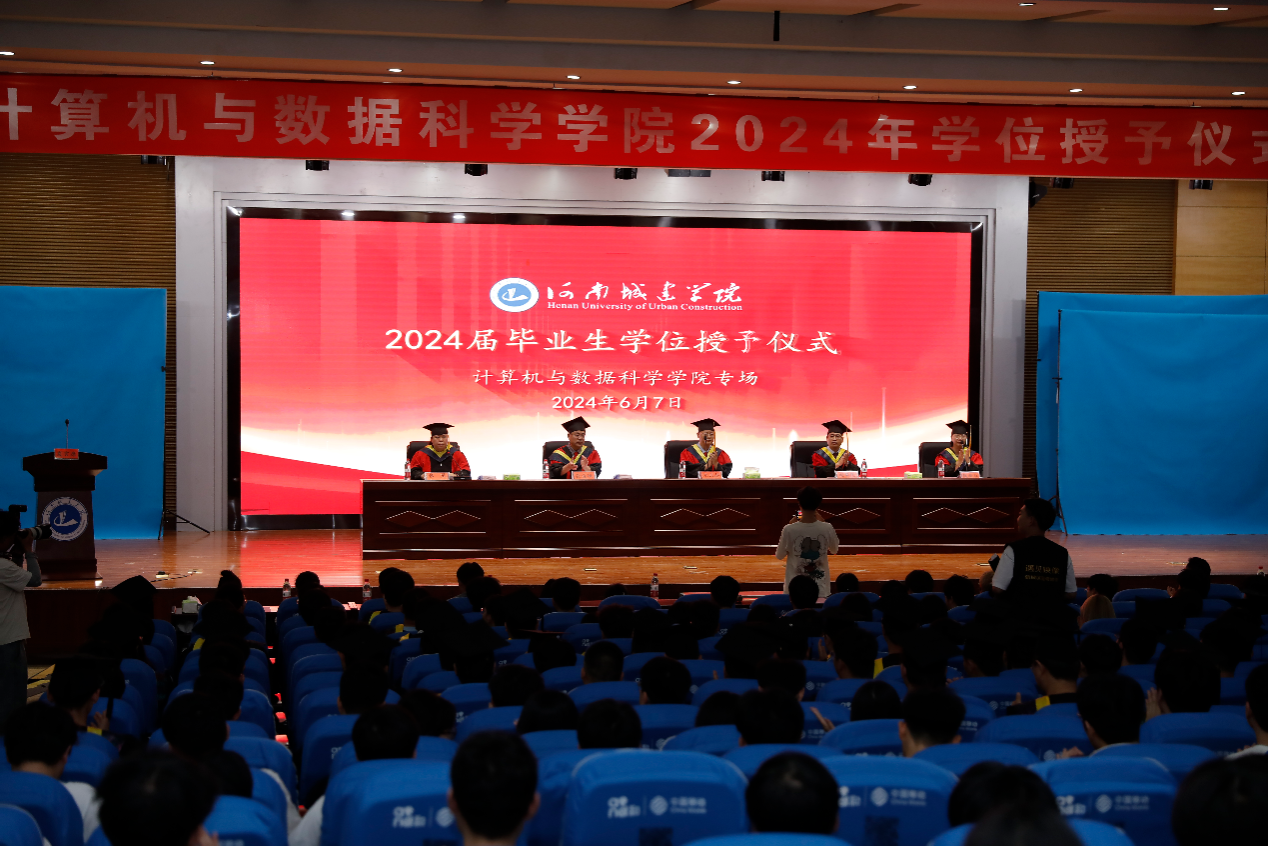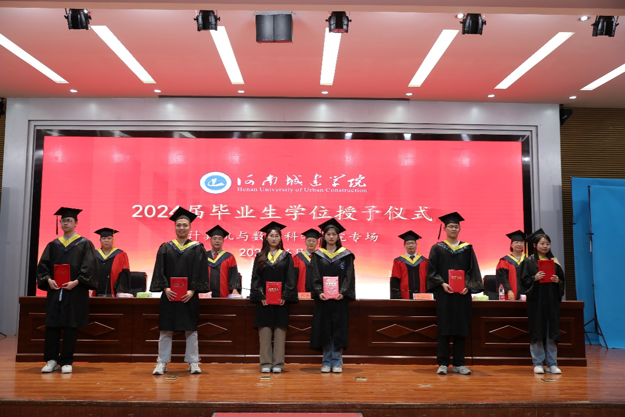 在典礼的序曲环节,学院领导与师生代表通过精心制作的视频短片,向即将踏上人生新征程的毕业生们送上了深情的祝福。伴随着庄严的国歌,典礼正式拉开帷幕。党委书记米启超宣读了《河南城建学院计算机与数据科学院关于表彰2024年优秀应届毕业生的决定》,智慧规划与智慧校园研究中心魏新红主任宣读2024届毕业生校友工作联络员名单,副院长张俊峰宣读了学士学位名单,学院领导为毕业生们颁发学士学位证书、拨苏正冠,并合影留念。