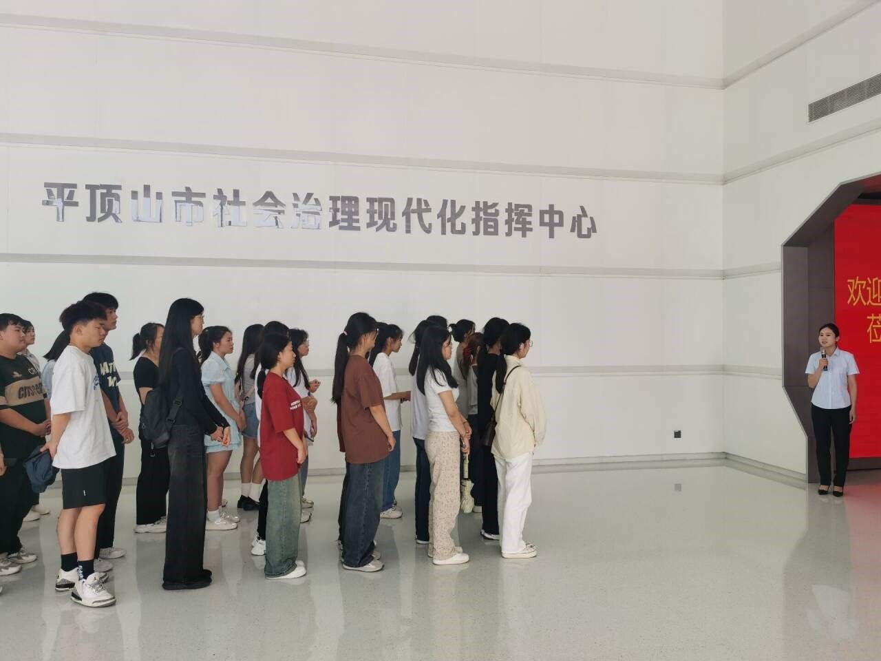 在平顶山市宝丰大数据局,工作人员为师生们讲解了大数据技术在交通管理、医疗健康及舆情分析领域的广泛应用,同学们对平顶山市大数据监测中心的强大功能及大数据实践价值有了深刻而全面的理解。随后,在平顶山市社会治理现代化指挥中心,工作人员又深入展示了如何通过融合先进计算机技术与大数据分析,为社会治理领域提供智能化、精准化的辅助决策支持,进一步拓宽了师生的知识边界。