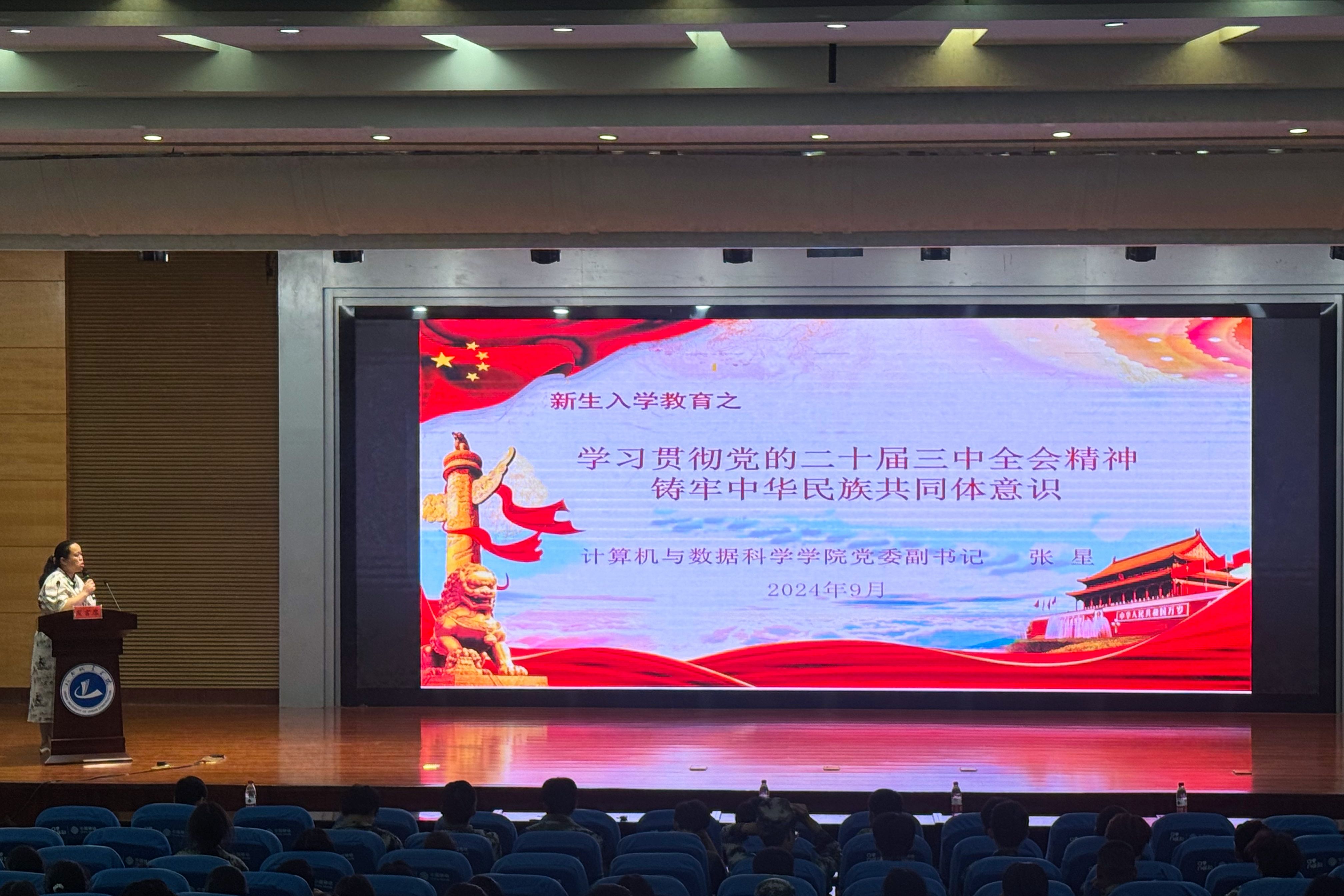 (通讯员 任恒)9月20日下午4点,yl9193永利集团组织新生在行政楼学术报告厅同上形势政策课。学院党委副书记张星为2024级新生上了题目为《学习贯彻党的二十届三中全会精神 铸牢中华民族共同体意识》的形势政策课。