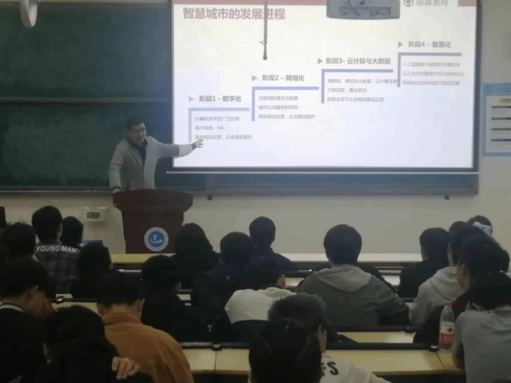 在会上,邓涔老师从智慧城市的发展与体系构架,大数据在智慧城市发展中的应用思路,大数据智慧城市的解决方案与实践,大数据智慧城市的应用与运营模式,四个方面为同学们进行了深入的讲解与分析。随后,他又以洛阳城市的建设为案例,具体讲解了智慧城市主要建设项目,智慧城市云平台的建设概述,智慧城市云平台的建设成效等方面内容。