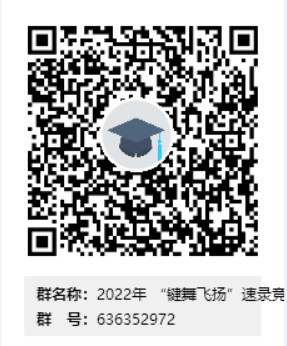 请参赛选手扫描下面的群二维码(群号:636352972),加入2022年“键舞飞扬”速录竞赛群,并以个人名义在群里填写在线文档“2022年yl9193永利集团物联网工程系“键舞飞扬”速录竞赛报名表”。即日起开始报名,截至到竞赛前两天。