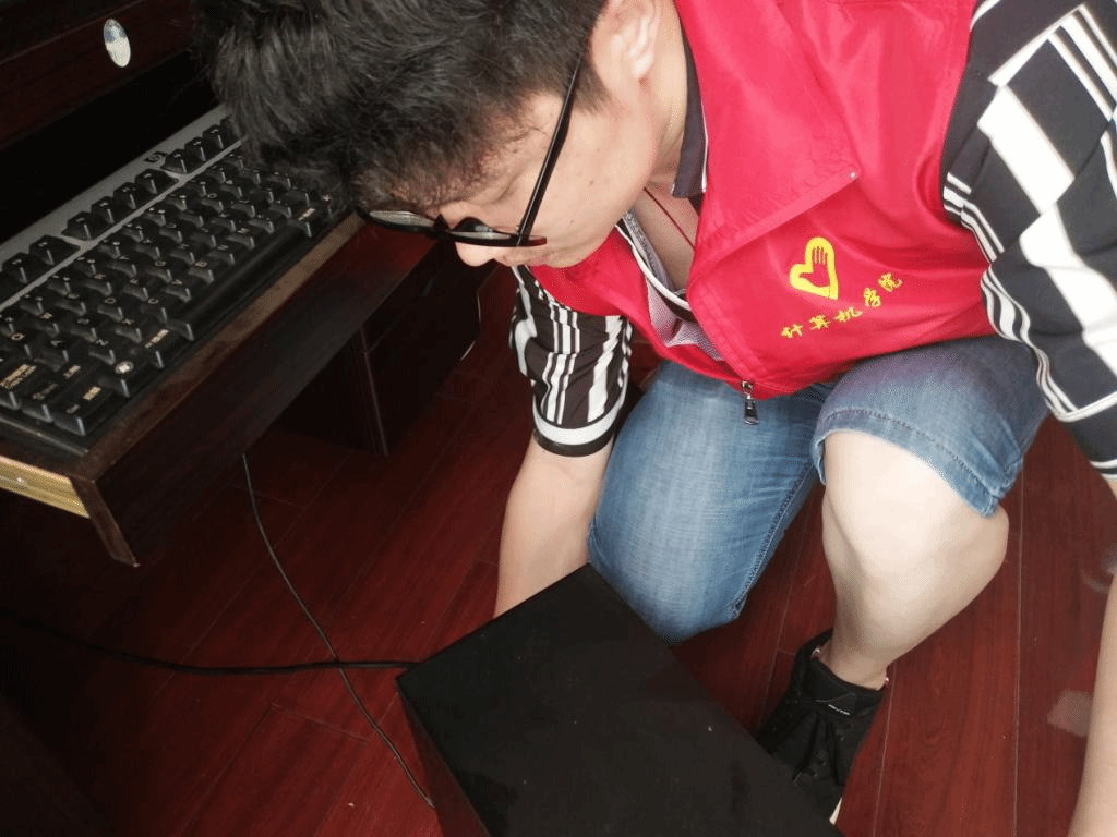 上午九点,计算机学院的义务维修服务队来到了井青社区,他们拿着“电脑常见问题及解决方法”的宣传页给当地居民看,并给他们讲解。遇到居民家中电脑出现故障,志愿者们向居民登记电话号码及家庭住址并携带工具亲自上门维修。志愿者们一边维修一边向居民讲解电脑的构造原理,旨在使居民更加了解电脑。居民们十分感激志愿者们的行为。