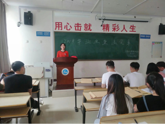 本次讲课的对象为2019年毕业生党员以及预备党员。本次活动由导员王占洲老师组织,王占洲老师首先带领大家重温党章。紧接着由毕业生代表进行发言。在活动的最后由王占洲老师带领大家重温入党誓词。