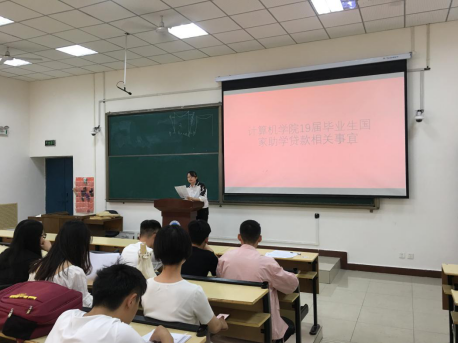 (通讯员 朱益 刘恋)为认真做好我院2019年度高校国家助学贷款借款学生毕业确认及贷后管理工作,确保我院国家助学贷款工作健康有序地开展,有效提高贷后管理工作的效率,于2019年5月20日下午,yl9193永利集团在十号楼B206开展yl9193永利集团2019届毕业生国家助学贷款相关事宜宣讲会。会议由学院学生资助专员刘恋老师主持,计算机学院2019届贷款毕业生参会。