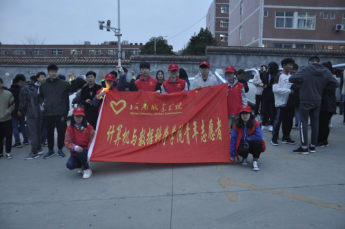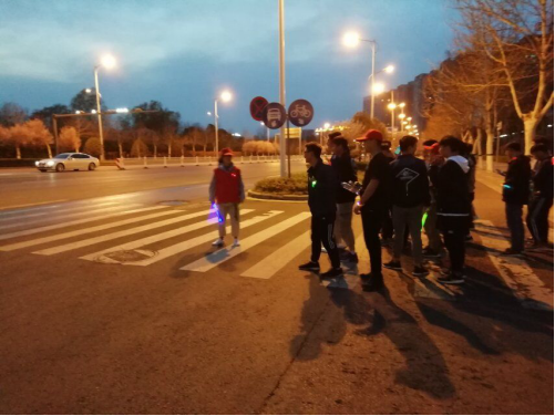 活动开始前,志愿者们在河南城建学院西门组织参加夜跑的同学们排好队形,并为大家发放荧光手环,志愿者们也分好小组,分别负责领跑,断后。过马路时,大家都听从志愿者的安排,都小心翼翼的按秩序过马路。途径漂亮的风景时,大家会停下脚步,欣赏并拍照,留下这美好的时刻。活动在平西湖喷泉广场处结束,大家结交好友,结伴回校。