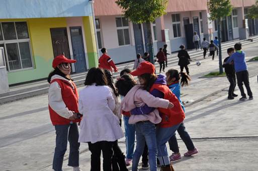 当天下午3:00,志愿者们携带着为小朋友们准备的奖品准时集合前往。到达目的地后,在操场上玩耍的小朋友看到志愿者们后相继簇拥着围拢过来,见到志愿者的小朋友们格外开心,似乎忘却了这冬日里的寒冷,整个校园一片温暖融洽。