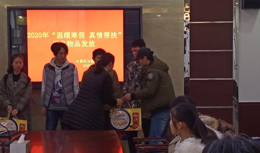 启动仪式上,刘恋简要介绍了此次寒假帮扶活动的主要内容,主要是关注因经济困难无力购买返程车票、组织教师和学生志愿者开展家庭经济困难学生家访慰问工作、发放寒假回乡物品补助、电话联系未走访经济困难生家庭等等。接着,张星和王梦琪分别为经济困难学生发放物品补助。