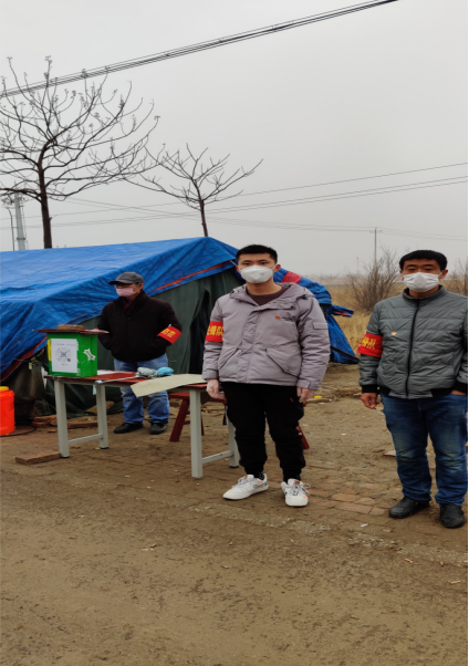 带上党徽,在保证自己的安全的前提下,同防疫人员共战一线。在村郊外围搭设帐篷,设立卡点。每天上午9点到下午5点对来往的车辆人员逐个进行停车检查,体温检测,扫码登记工作,做好对于疫情放松警惕群众的思想工作。