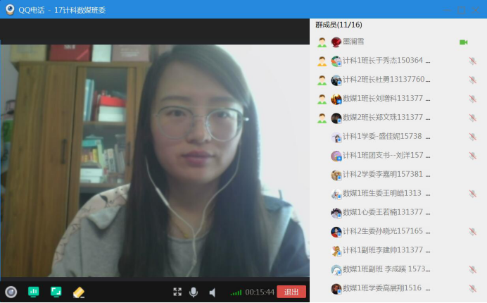 17级辅导员刘恋通过QQ语音和群视频的方式对所带班级开展云班会,内容主要围绕专题学习、思想政治教育、学风引导、思想状况调查和“报平安”要求五个方面展开。刘恋借助战“疫”中生动丰富的育人素材,引导学生要有爱国爱民的家国情怀和励志勤学的奋斗精神,自觉提升科学素养和人文情怀,坚定爱国力行的使命责任,用实际行动践行报效祖国、奉献社会的担当和使命。