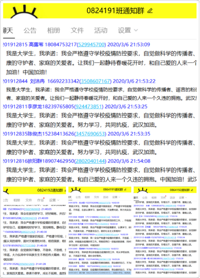 18级辅导员王占洲通过QQ群语音带领同学们学习防疫专题内容、身边榜样事迹,鼓励学生代表发言分享,呼吁全体18级学生向疫情中的“逆行者”点赞和学习,听从学校和地方政府的指挥及安排,相约“春暖花开,携手城建”。