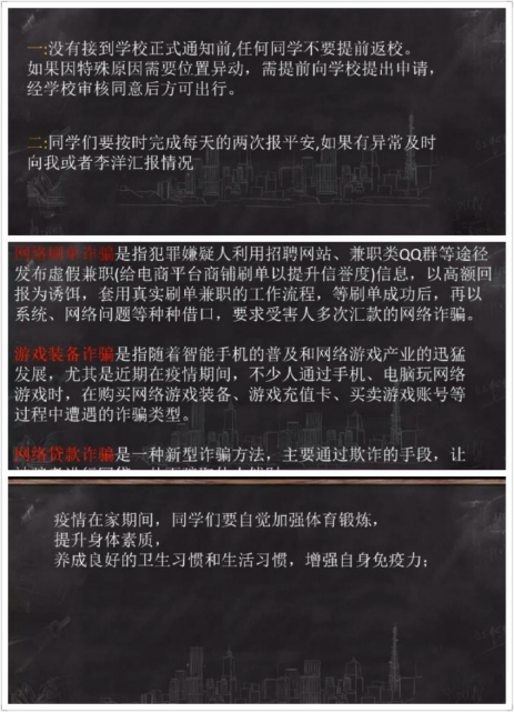 提醒同学们遵守学校疫情防控规定、注意防诈骗