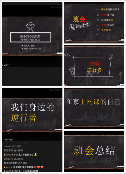 此次“云班会”班会凸显同学们的主体作用,聚焦同学们的关注热点,开到了学生的心里,较好地调动了同学们的主人翁意识和参与热情,参与同学多,发言内容生动丰富,班会气氛活跃。更为重要的是,同学们通过自觉主动参与,切身切实地感受到疫情这一特殊一课给我们带来的深刻启示,在自己的审视反思中,提升家国情怀、责任意识和担当意识,增进自强不息、学好本领的紧迫感和使命感。