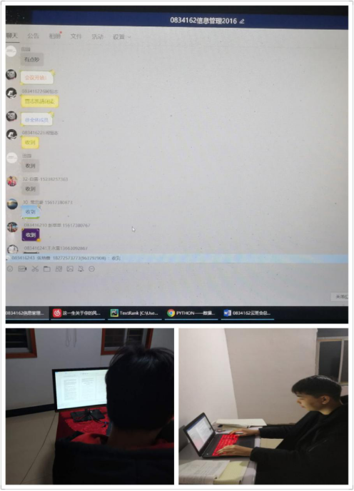 16级“云班会”通过QQ群语音开展,班会围绕疫情专题学习、湖北学生代表发言、榜样学习、自我发展等部分展开,要求同学们要严格遵守疫情期间学校各项规定,心有榜样、不断奋进,同时要注意身心和谐发展,注意锻炼身体。辅导员王梦琪在强调疫情防控专题学习重点内容基础上,呼吁同学们做好本职工作,端正心态,努力提高自身素质,为开学和未来做好准备。