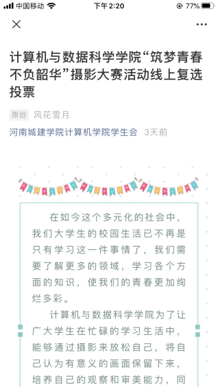 “筑梦青春·不负韶华”摄影大赛网上投票