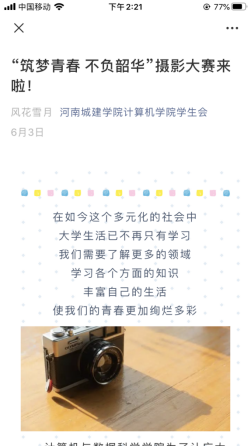 “筑梦青春·不负韶华”摄影大赛宣传