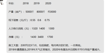 7月16日“科技支农,投身乡村振兴”服务团走进村庄实地调研当地种植梨子和玉米在线下销售、人力物力消耗、净赚和施工天数等情况并进行了总结。在这过程中服务团调研人员发现农户虽然种植了大量土地,但是在产量上的收获并不是很大,有时会因为天气的原因导致产量大幅度的减少。比如在技术人员总结梨子最近三年的产量里面发现梨子产量分别为(5000、8000、3000)。而造成这种情况的原因是2018年遭遇霜冻,2019年天气正常情况,2020年有霜冻并且授粉不均匀导致产量减少。“科技支农,投身乡村振兴”服务团对调研结果进行总结,发现自然灾害对农产品的产量有着极大的威胁。服务团将对面对自然灾害进行哪些措施能减少对农产品的损失这个问题为接下来的工作重点进行探索。