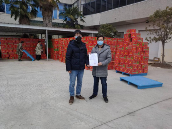 图为阳世伟为医院募捐到大量物资