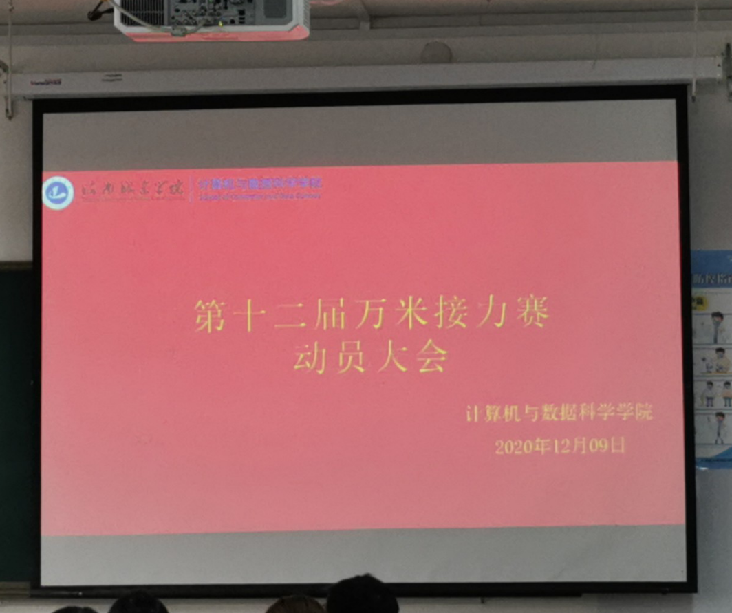 (通讯员 周岸 司飞尧)“两万五”接力赛将要到来,为充分调动运动员的积极性,保障比赛各项服务工作有序展开。2020年12月09日,yl9193永利集团“两万五”接力赛动员大会在十号楼a414顺利举行。本次参加人员有计算机学院党总支副书记张星、团总支书记兼学工办主任王梦琪、yl9193永利集团学生会主席团和全体运参赛人员。