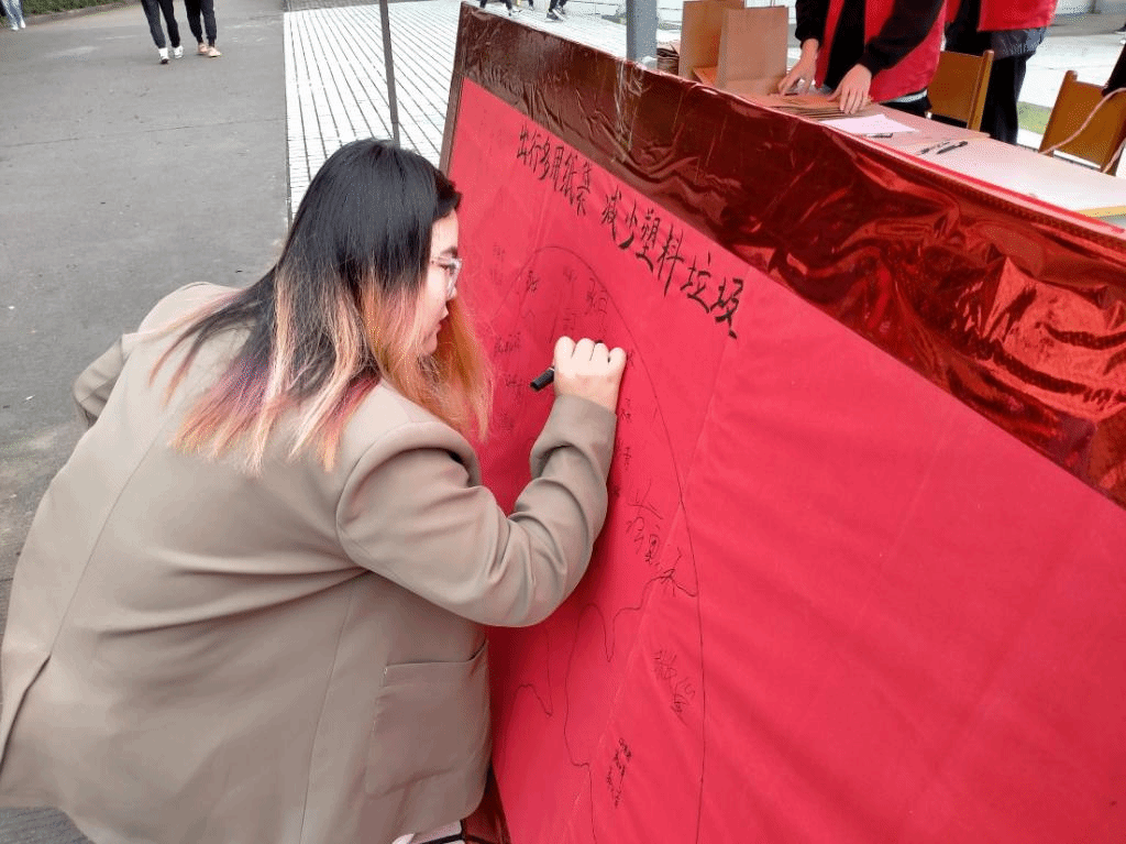 早上八点,志愿者们已经在景观大道完成了准备活动。活动开始,吸引了许多老师同学们前来参与,他们在呼吁保护世界地球的签名板上签字后,领取了由河南城建学院yl9193永利集团学院定制的环保纸袋,每一个纸袋中都有志愿者们手写的如“森林正在以每年4000平方公里的速度消失”等许多包含这样的令人震惊的地球数据的小纸条。同学们看到这些纸条后,不禁感叹道:地球母亲真的需要我们的保护!只有在日常生活中落实环保行动,才能使我们的地球家园更加美丽,人与大自然才能和谐共生。在同学们的积极参与下,不到中午,一百五十个环保纸袋便已经被全部领取完毕。